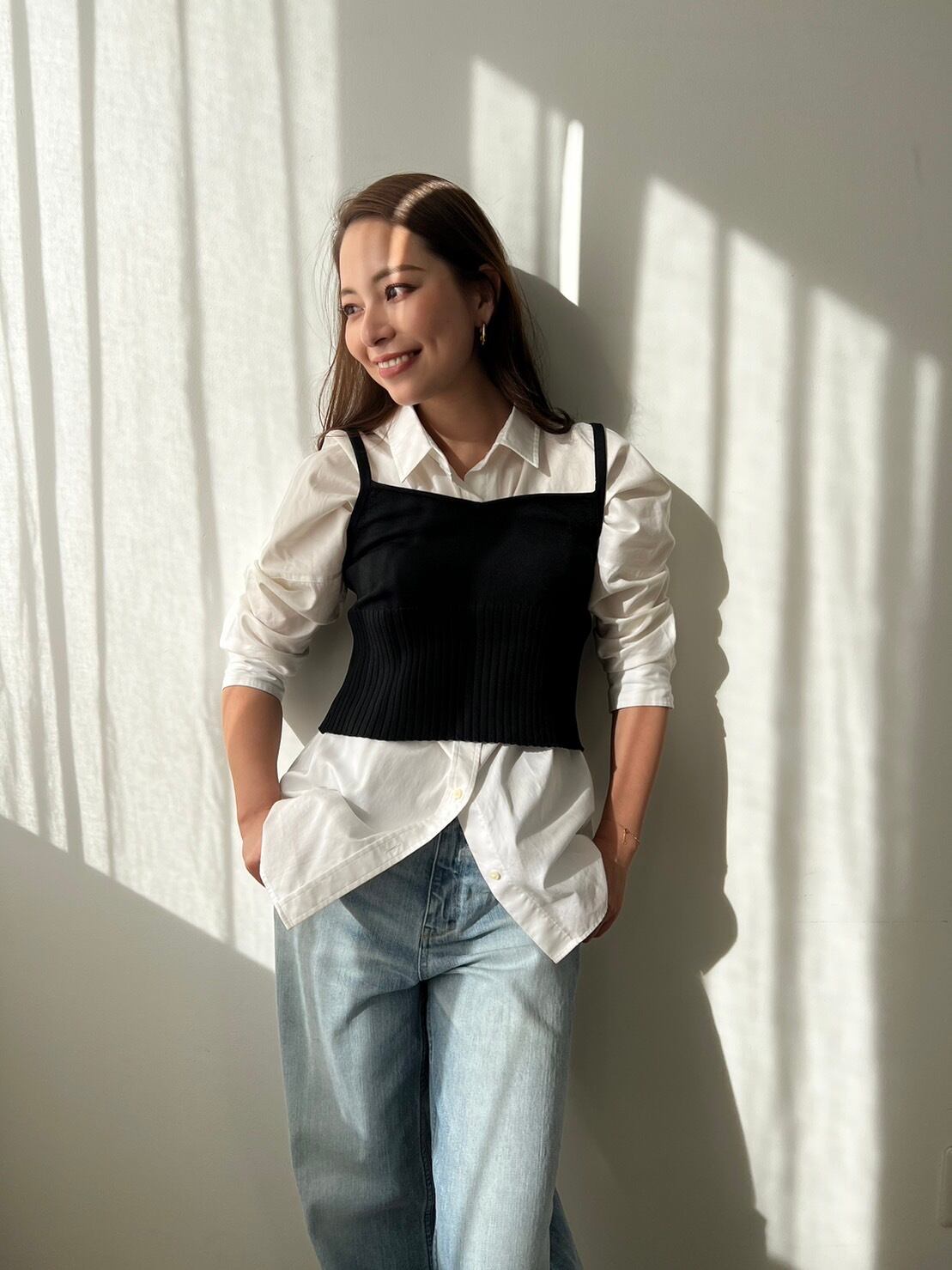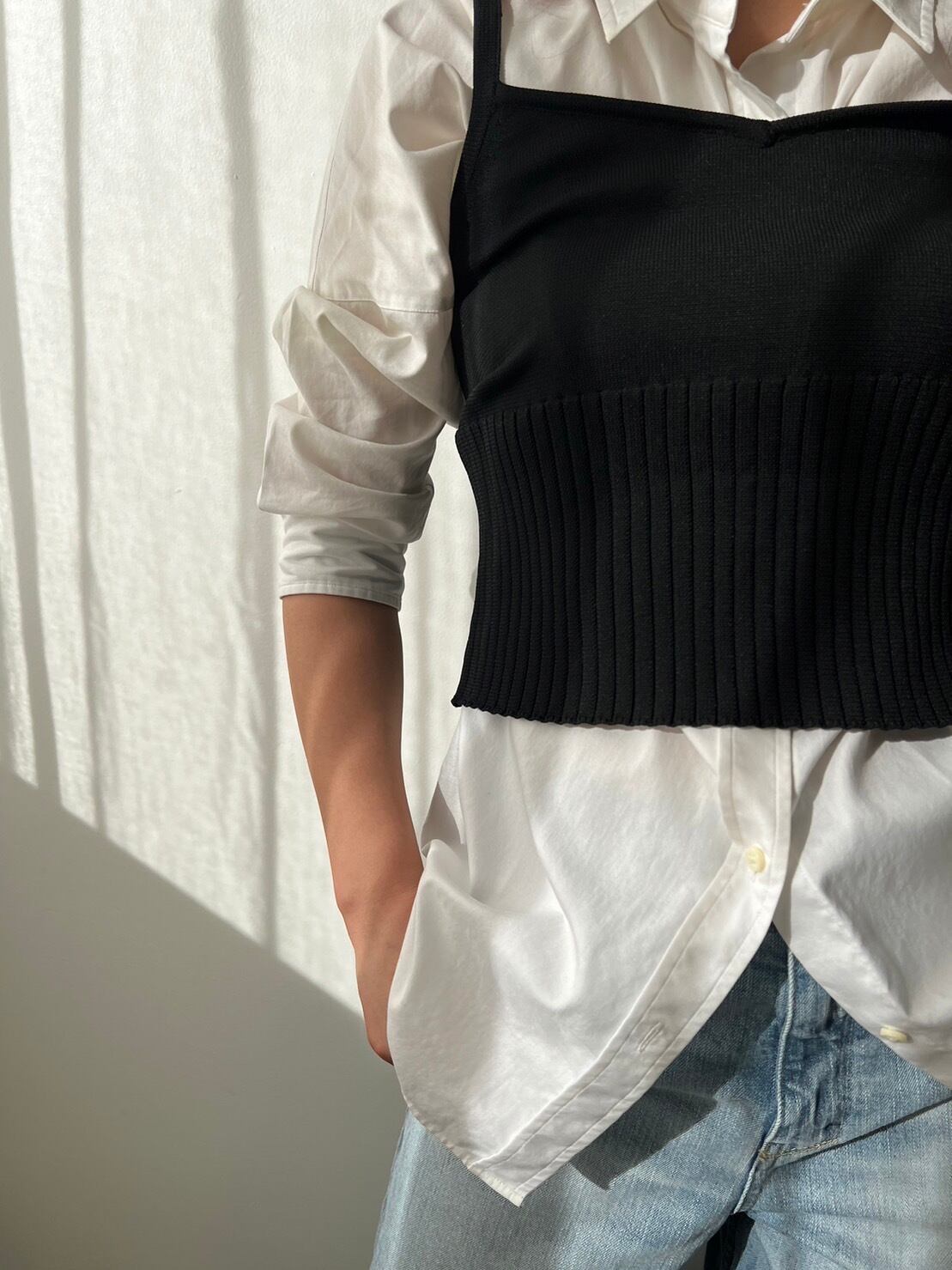 ビスチェはシャツやカットソーとのレイヤードスタイルもオススメで