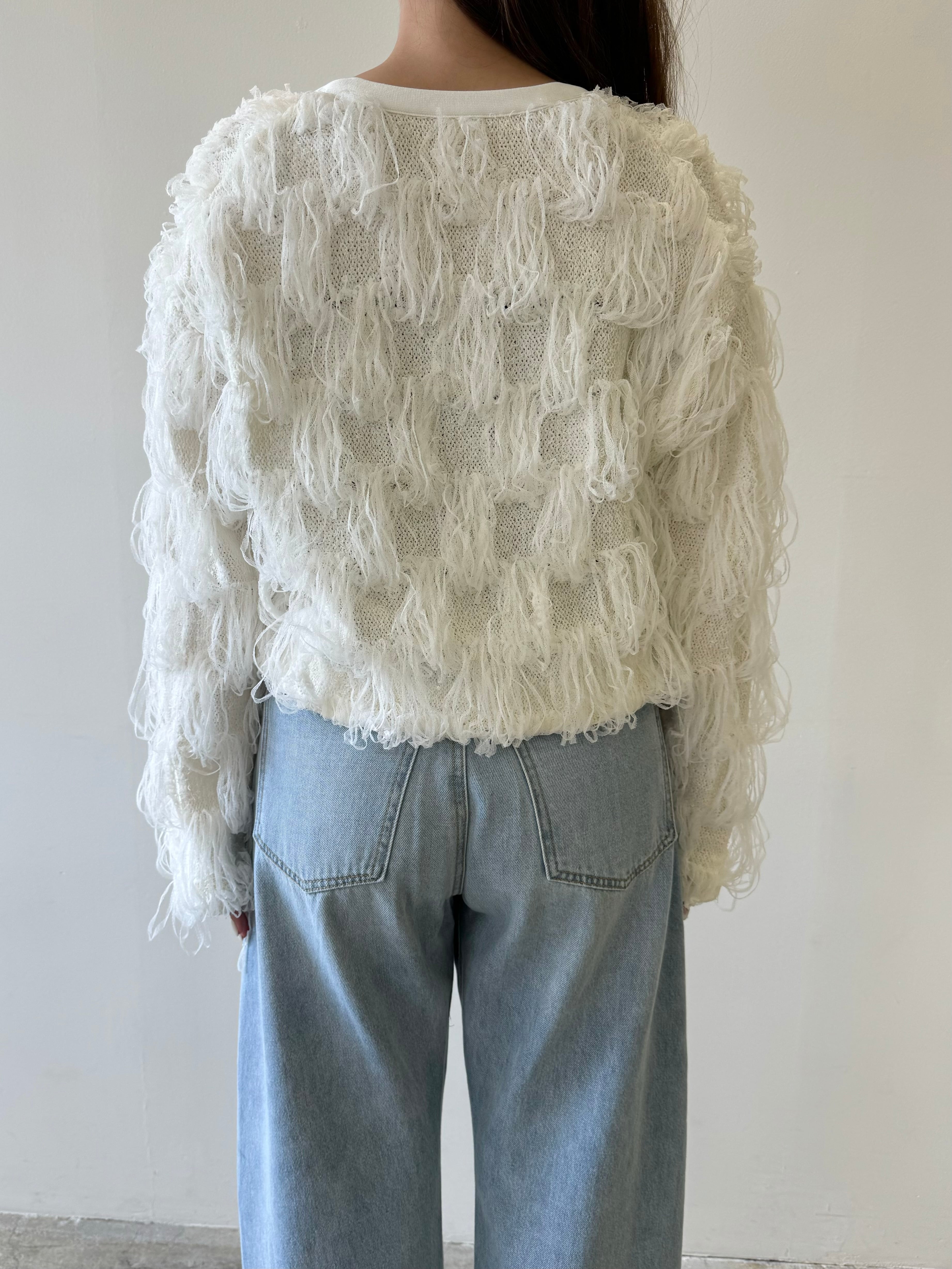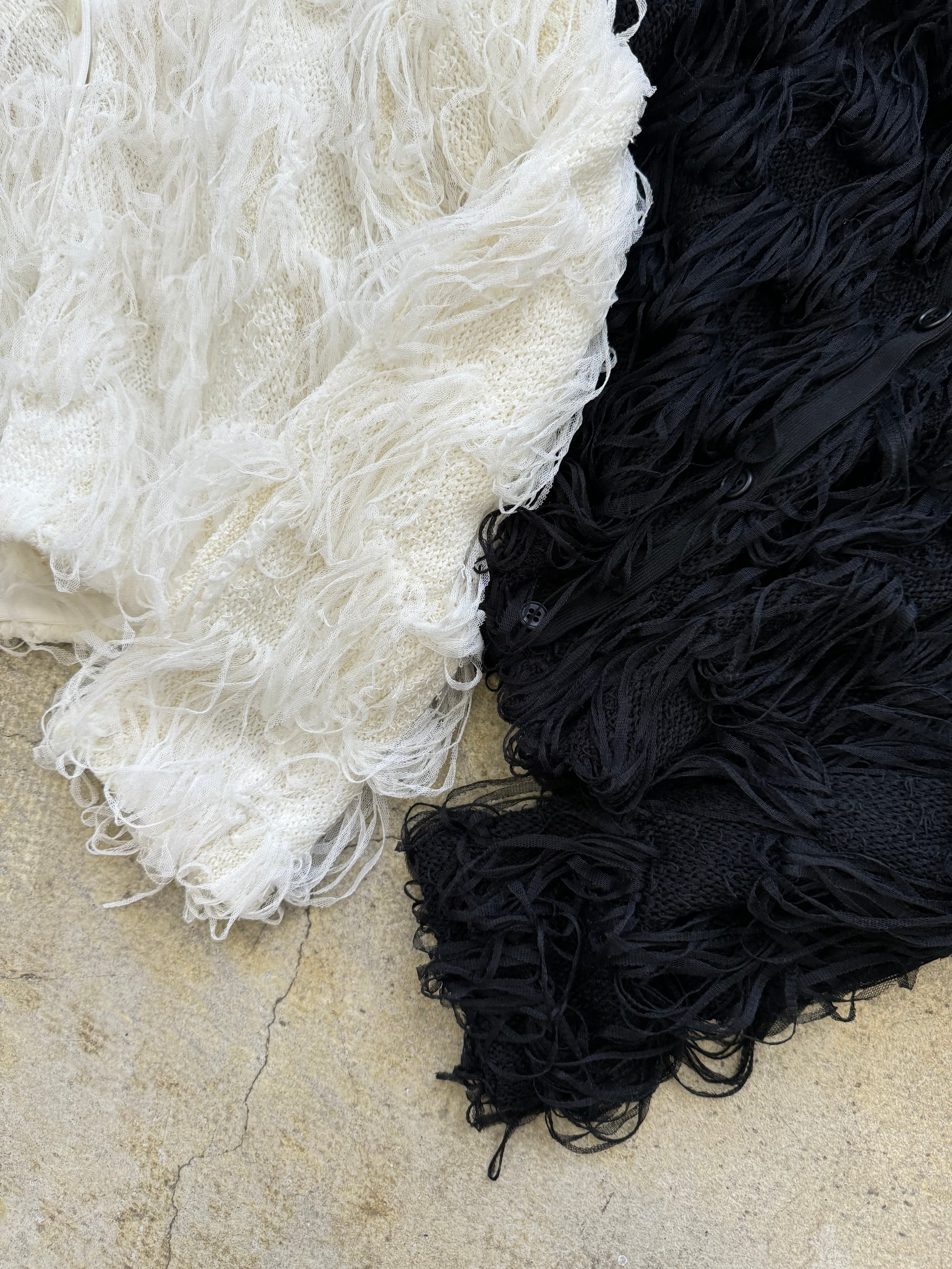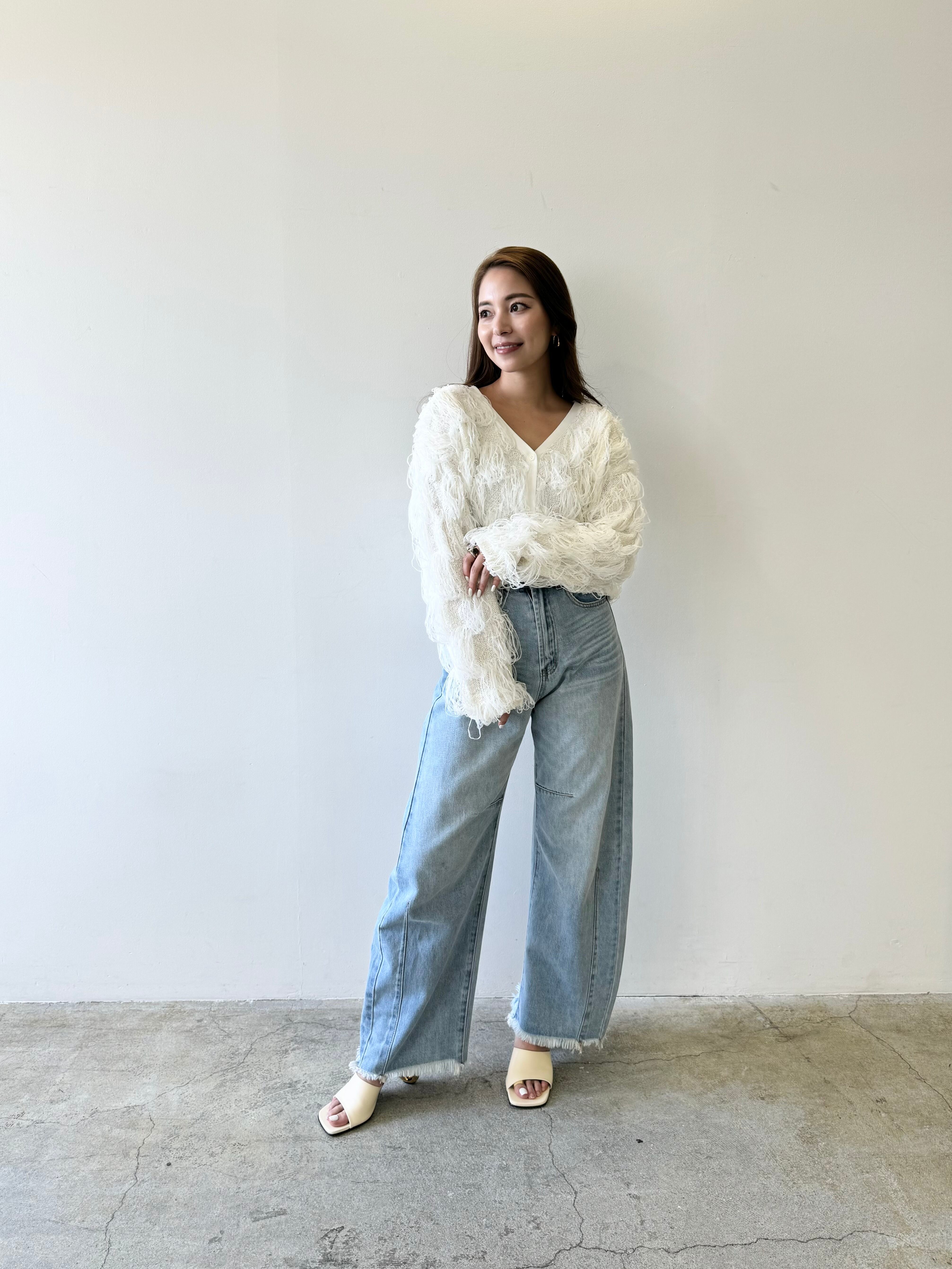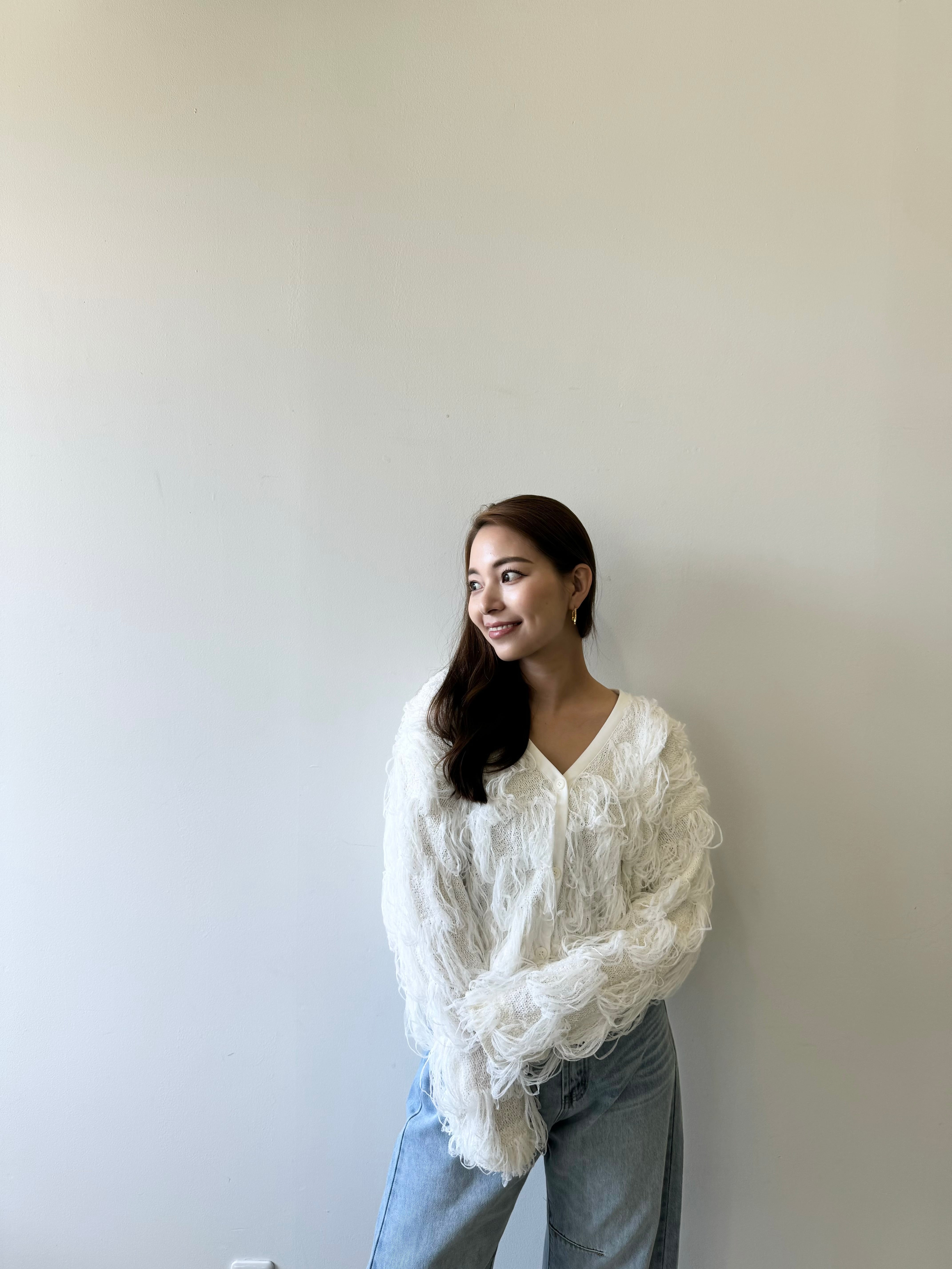 ニットに見えないほど立体的で、フリンジのような繊細な編み地が他にはないousiiaらしい華やかなニットです。